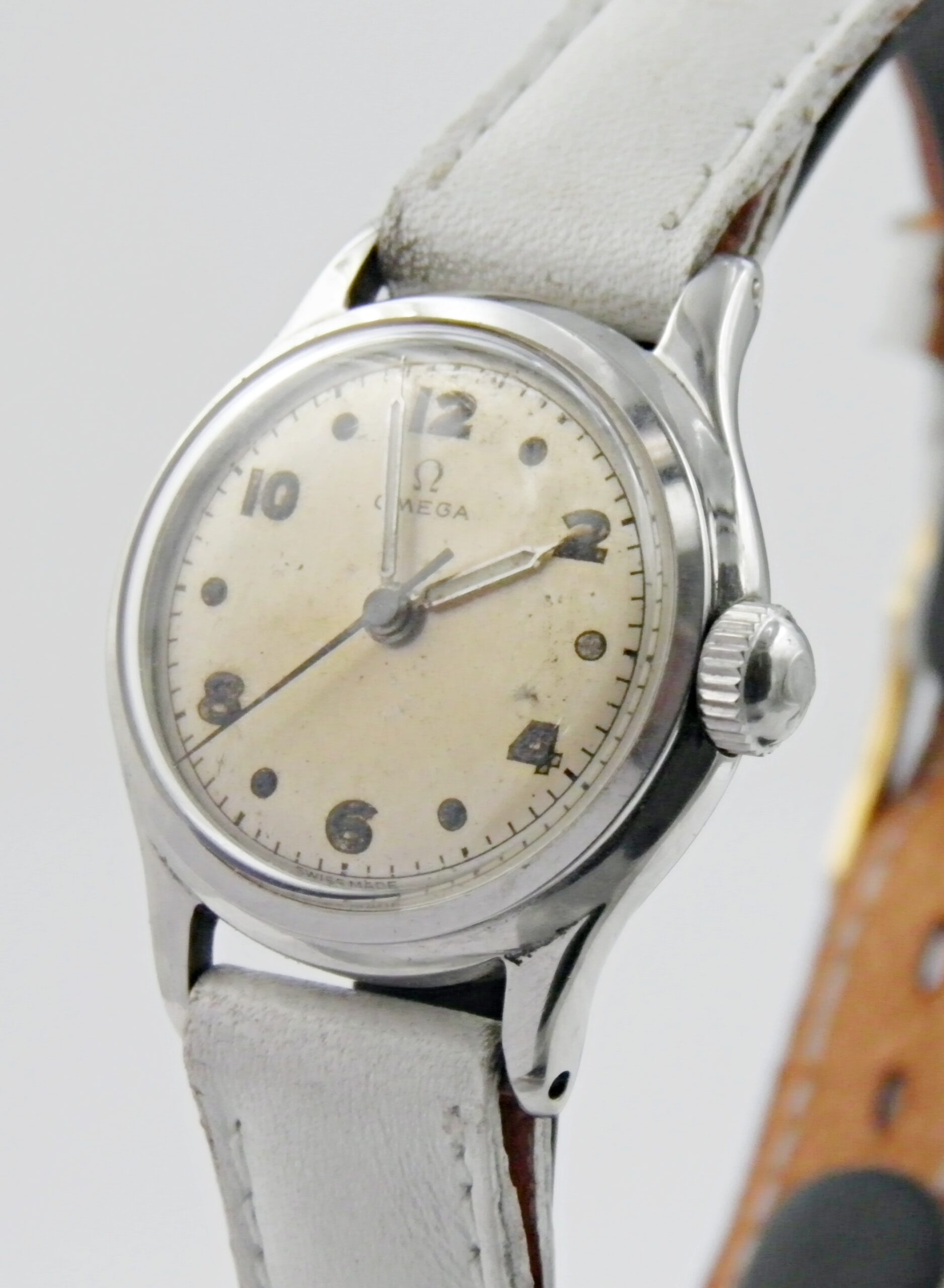 Ravissante montre mécanique signée OMÉGA Watch & co datant de la fin des années 30’s début 40’s. Un beau boîtier acier, couronne signée Oméga, joli patine du cadran et bracelet neuf. Elle est équipé du calibre Oméga 252 de 17 rubis sorti en 1938. Elle a été entièrement révisée et controlée, sa marche est excellente.