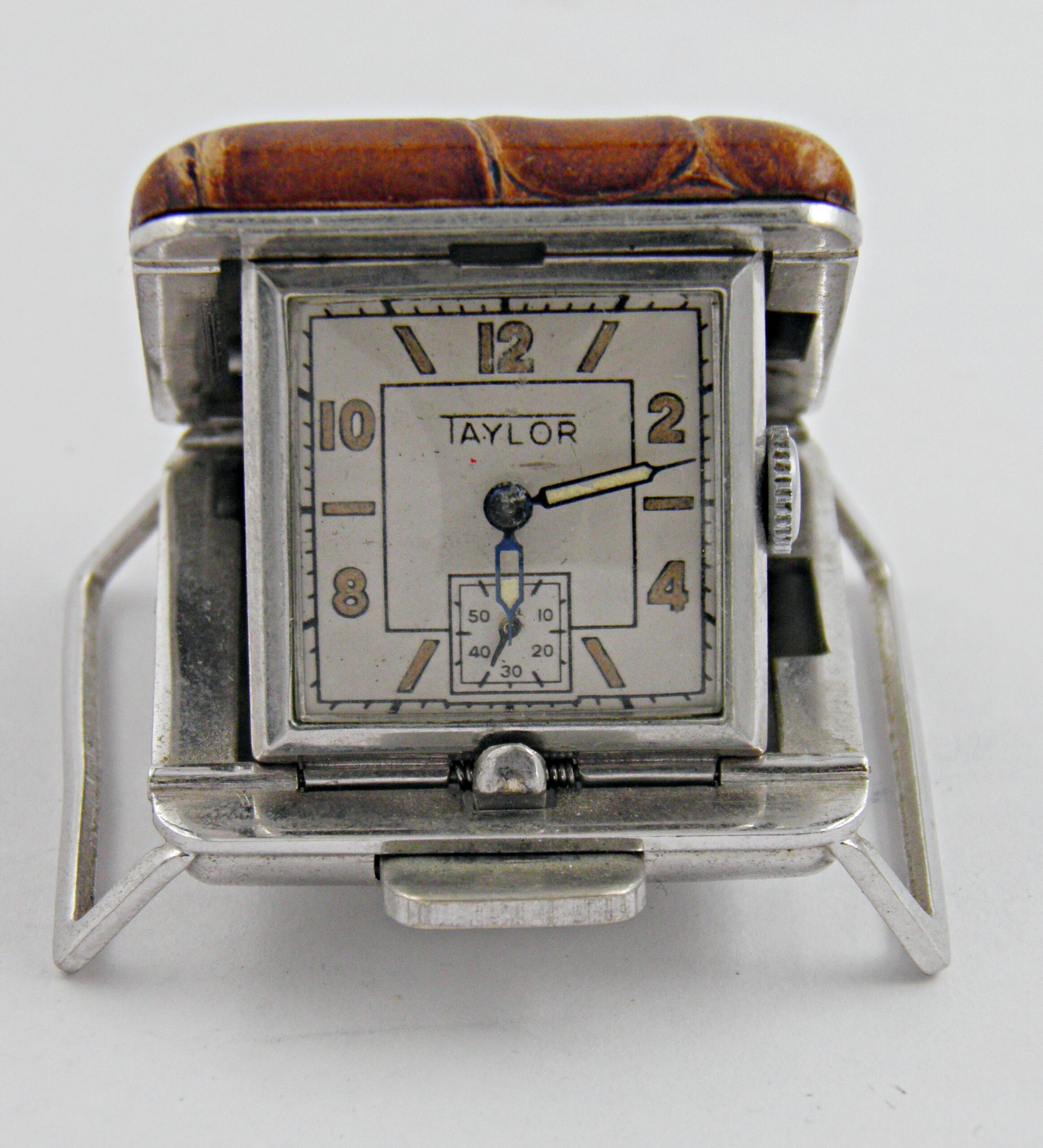 Surprenante montre de la fin des années 30’s en argent massif, parmi les premières montres « imperméables », comme le dit son nom « toujours au sec ». Une luxueuse version avec sa lunette vissée et son mouvement sur charnières, superbe finition. Le verre minéral est neuf,ainsi que son bracelet cuir. Le mouvement a été révisé et sa marche est excellente. Superbe boîtier argent massif avec ses cornes stylisées, presque un boitier monocoque pour assuré une protection optimale du mouvement contre l’eau, poussières et l’humidité.