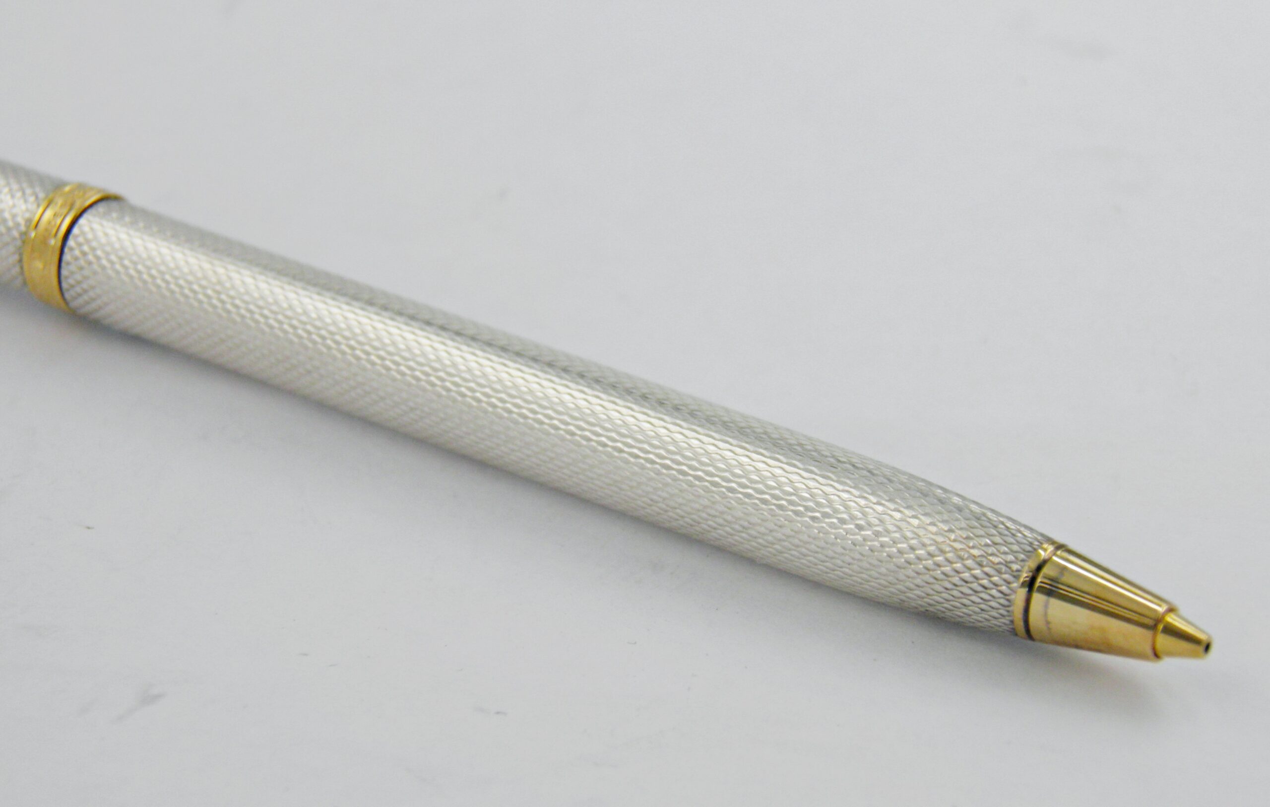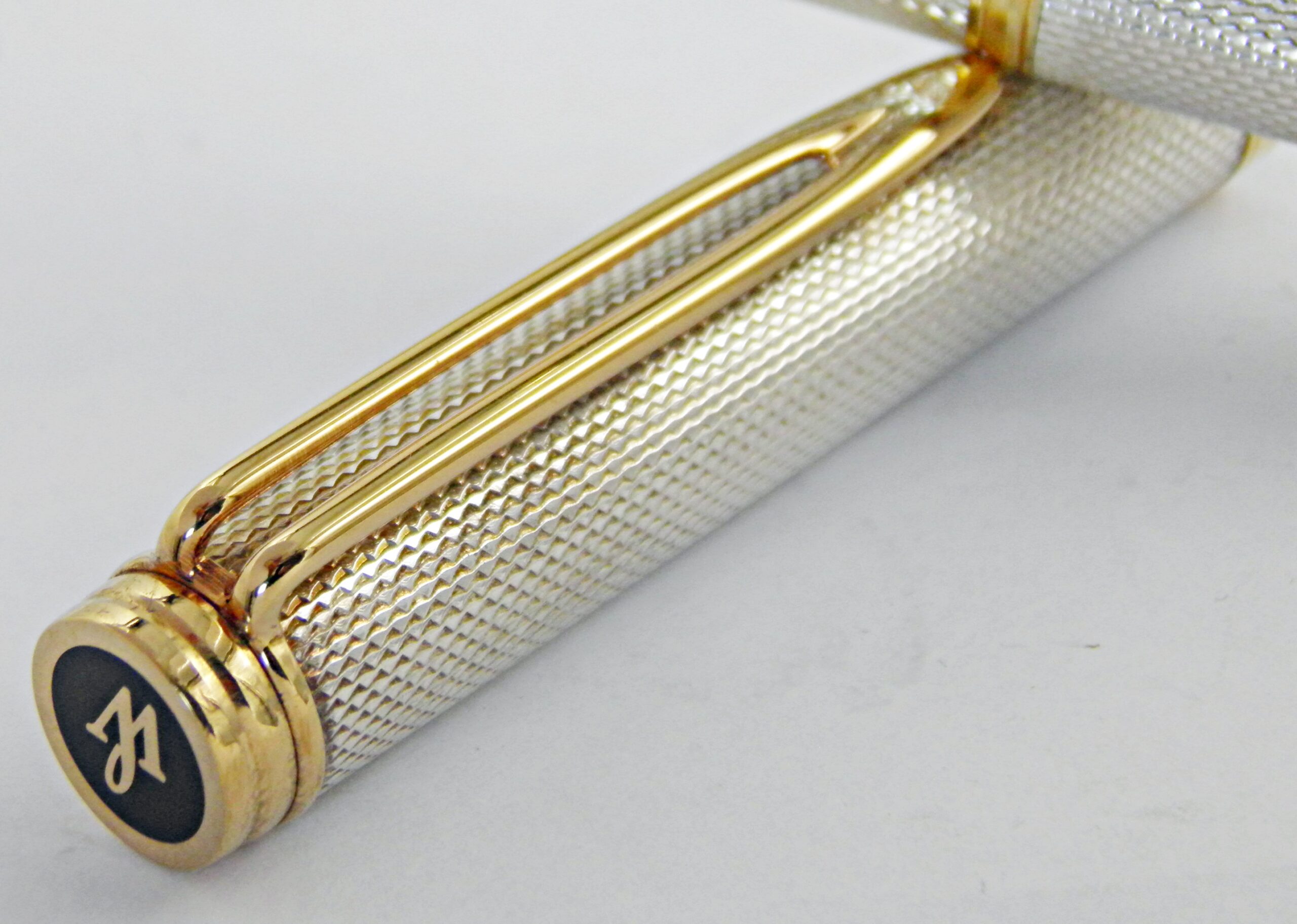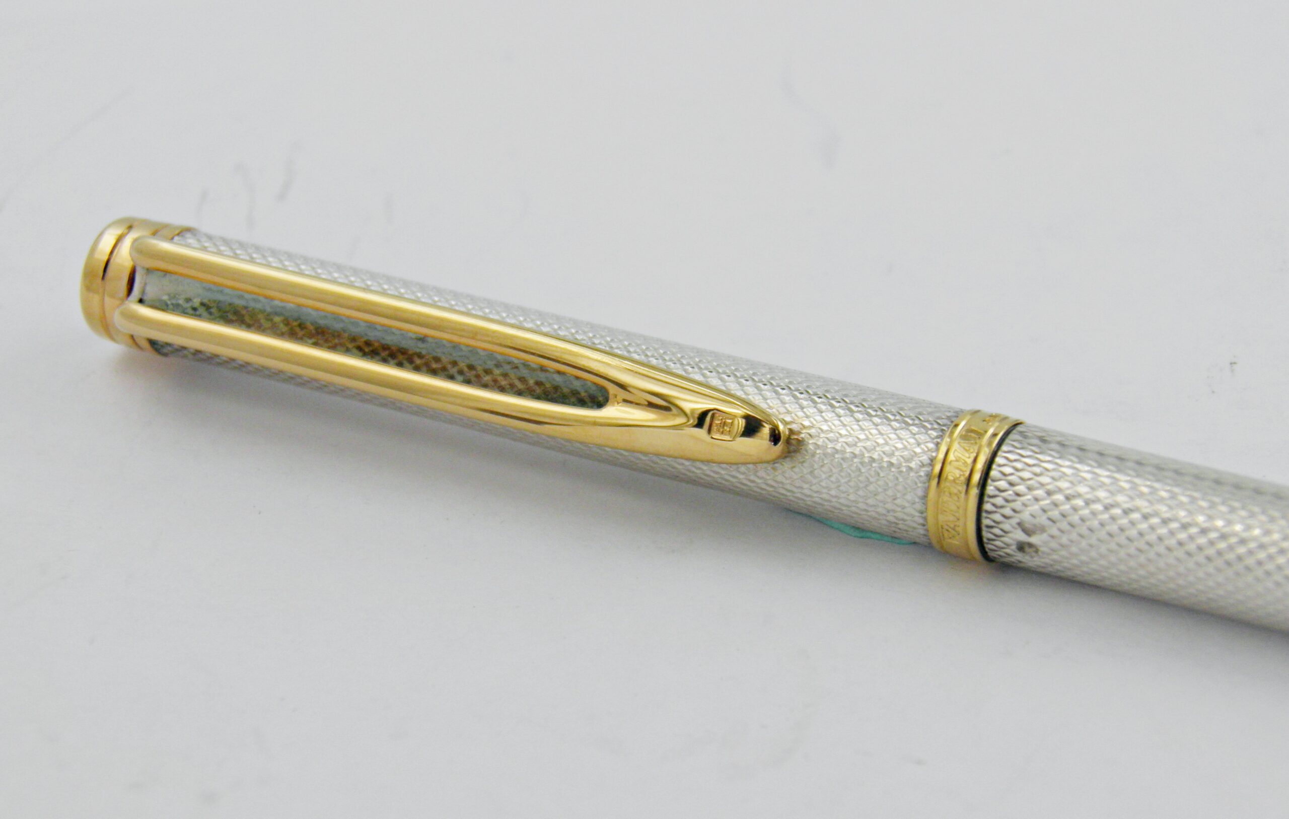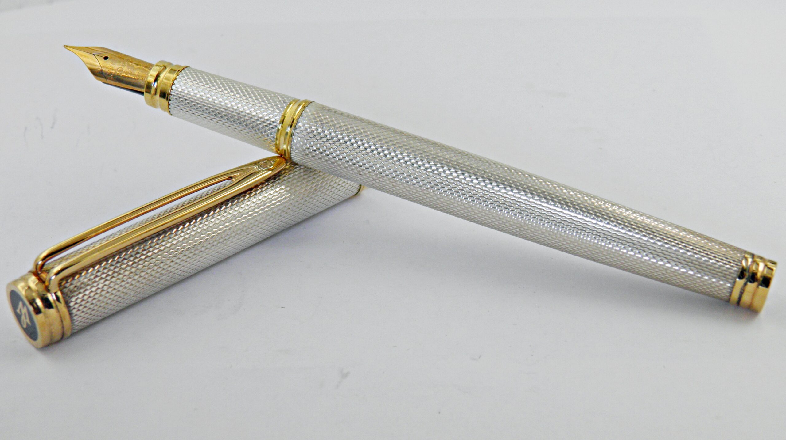 Une superbe parure Waterman en argent massif et motifs grains d’orge, ce sont des modèles Gentleman, un stylo plume et son porte mines (0,7mm) à l’état neuf. Une parure rare dans cet état, les poinçons argent sont présent sur les deux stylos. La plume Waterman Idéal est en or 18k de taille extra fine. Un modèle des années 70’s.