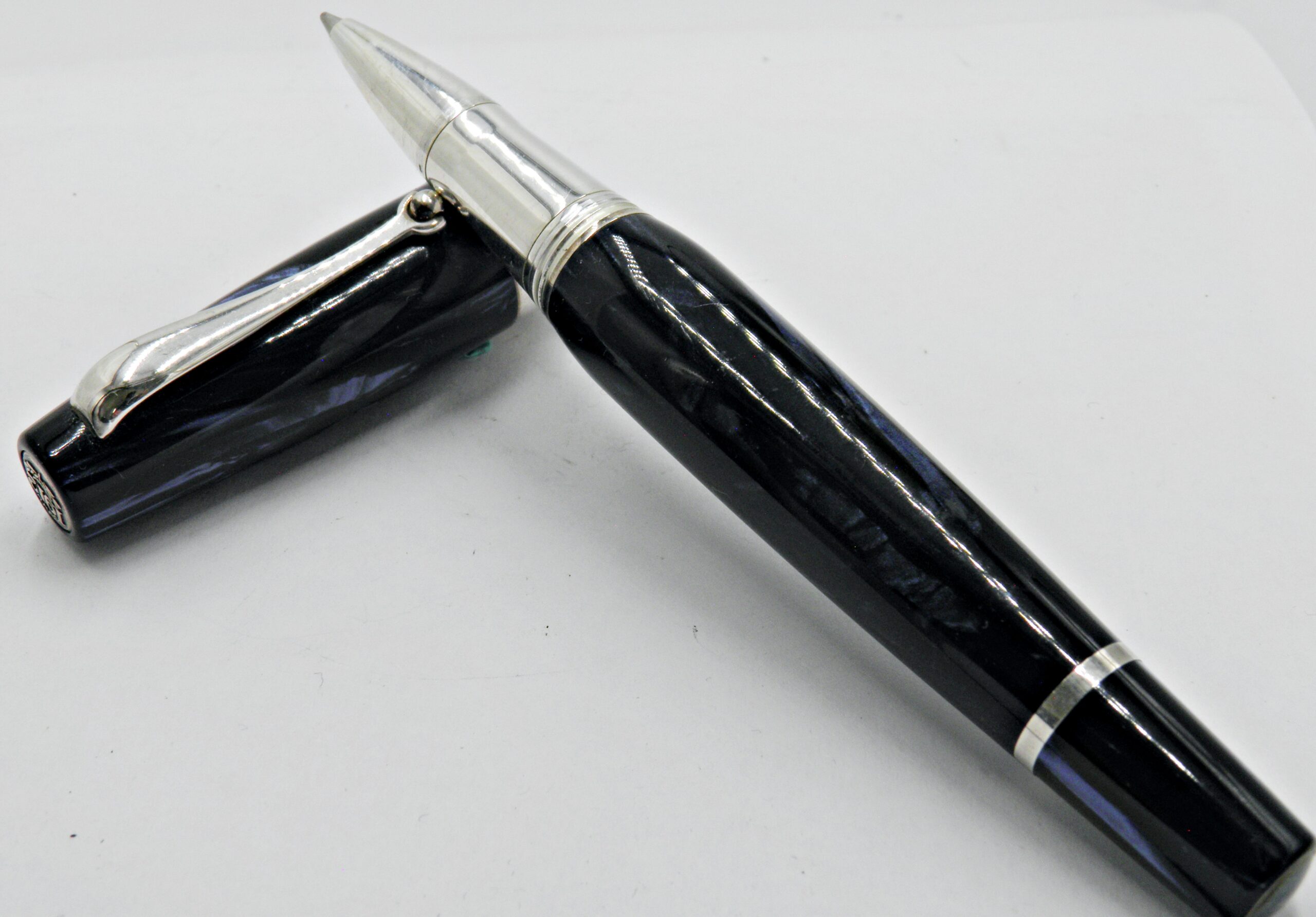 Un stylo bille signé MONTEGRAPPA, c’est un modèle Extra 1930 en celluloïd bleu marbré, magnifique.  Le corps est en argent 925 et en celluloïd bleu. Il est en excellent état général.