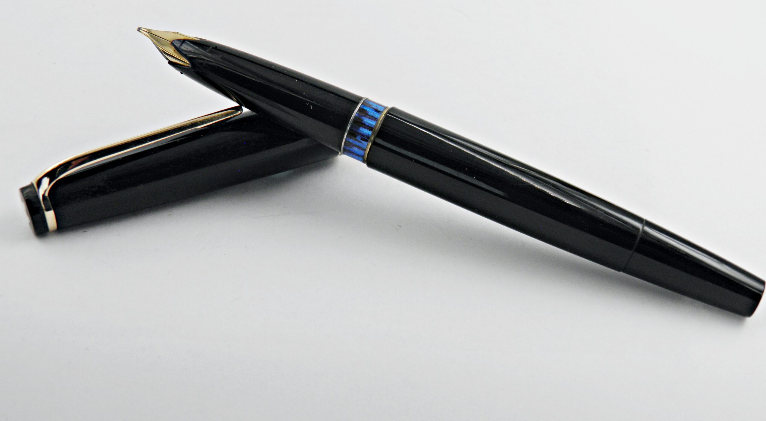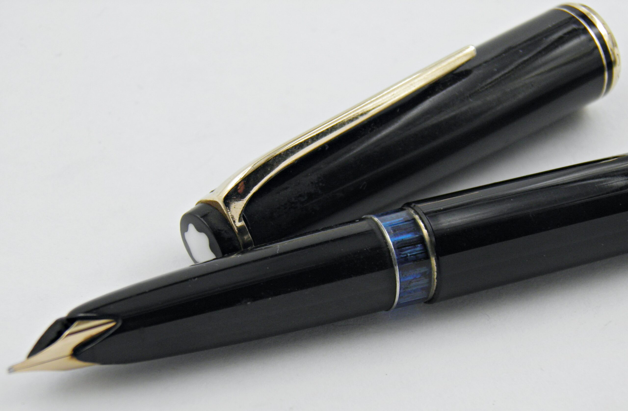 Un classique du fabricant MONTBLANC, ce stylo plume porte le numéro 24, il est en celluloïd noir et attributs plaqués or. Il a une rare plume or 18k de taille stub, particulièrement agréable. Il fonctionne à l’aide d’un système à piston. Il est en excellent état.