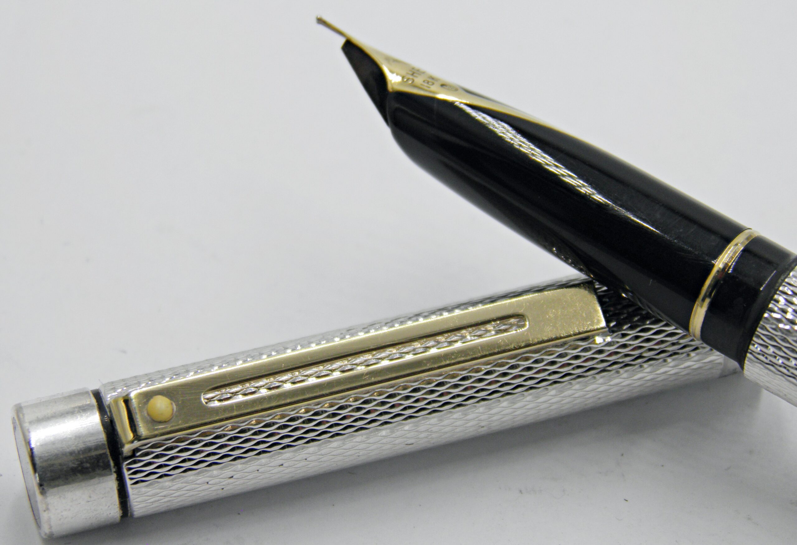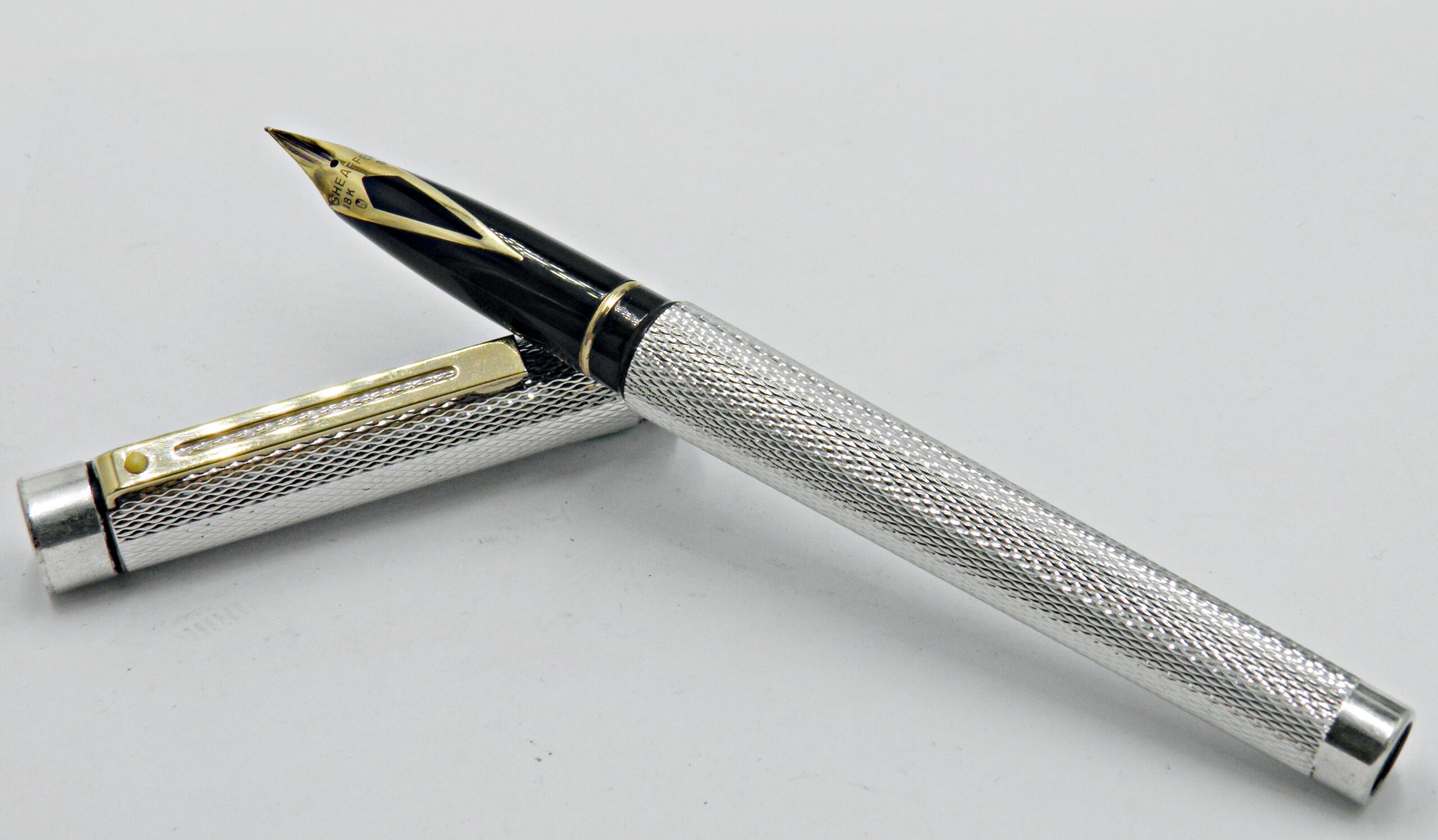 stylo plume Sheaffer Targa plaqué argent et motifs grains d’orge 1980’s