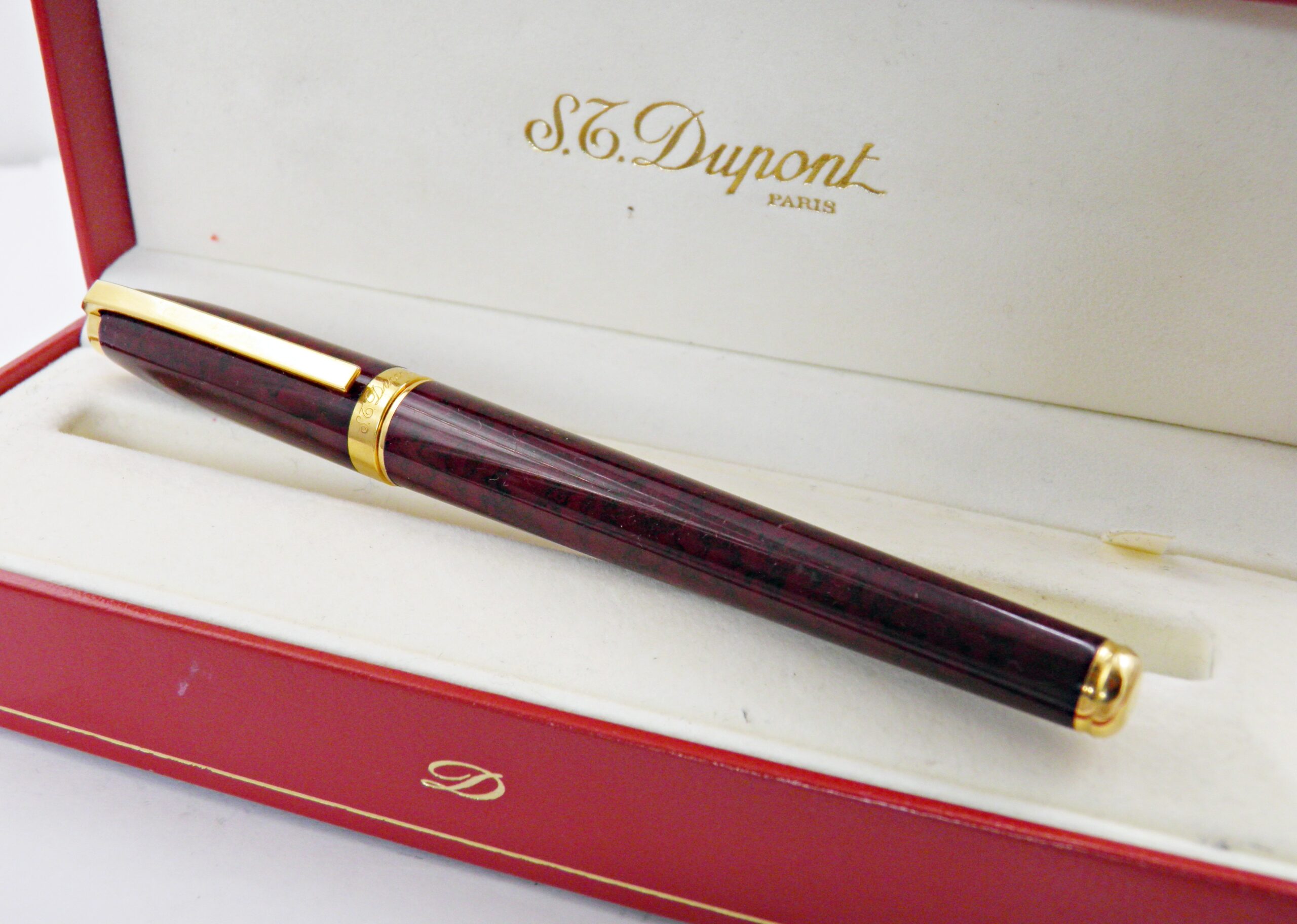 Stylo plume ST DUPONT FIDELIO 1990’S Laque irisée bordeaux & noire Neuf