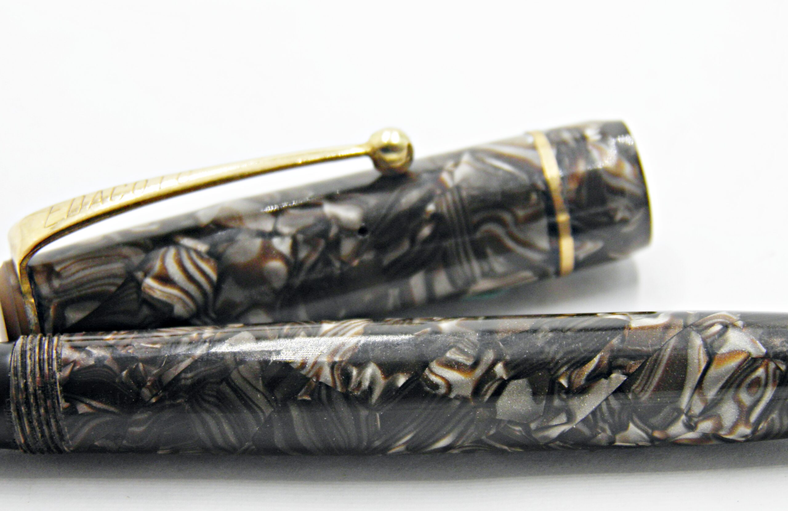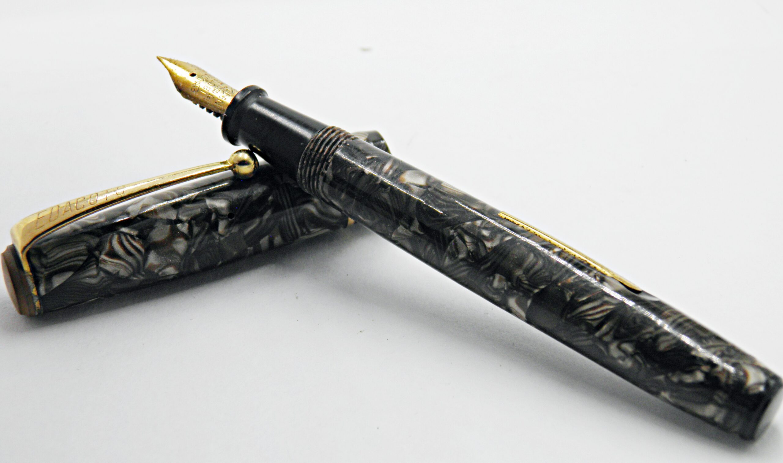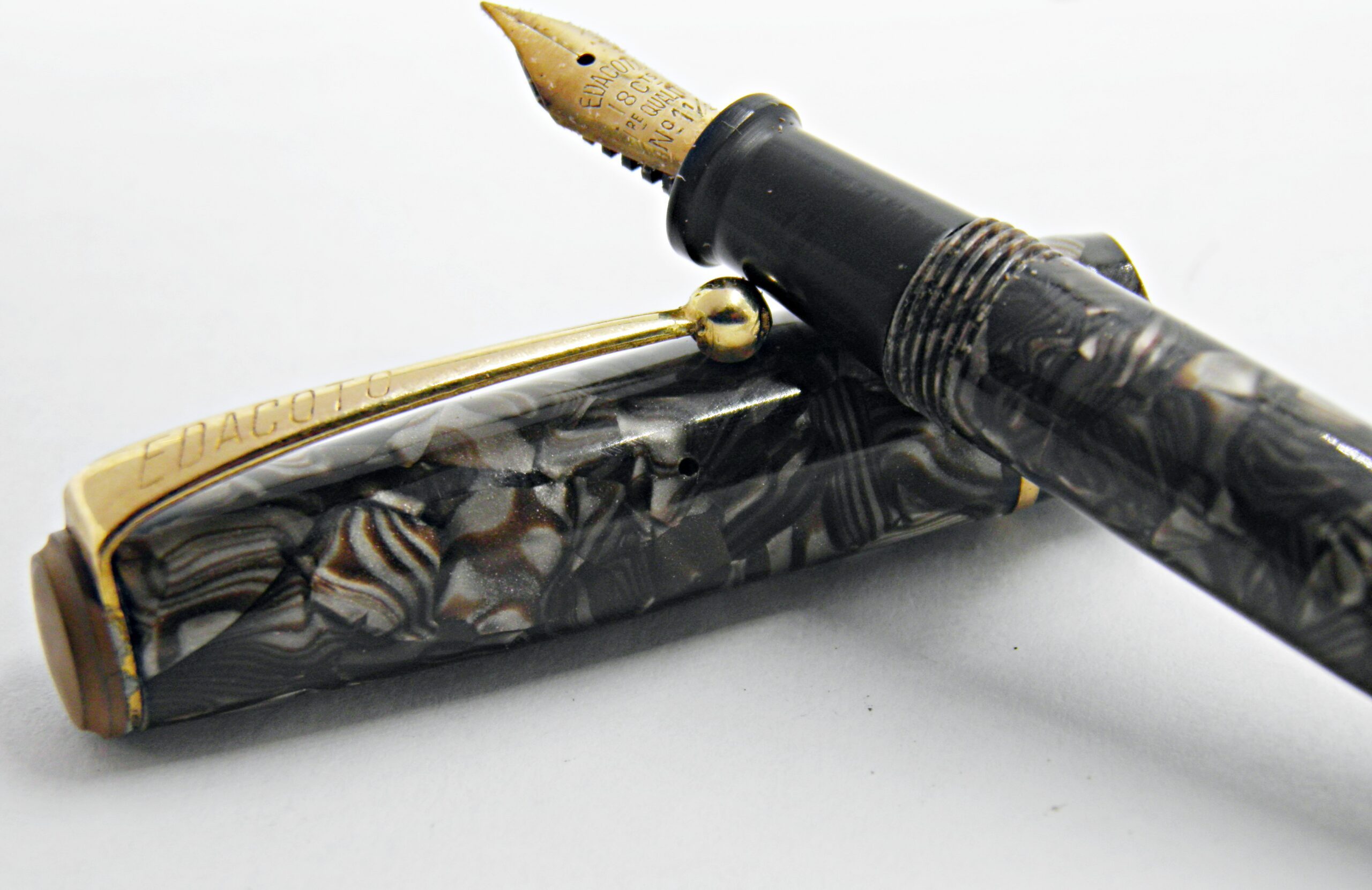 stylo plume EDACOTO celluloïd marbré marron et gris 1940’s flex