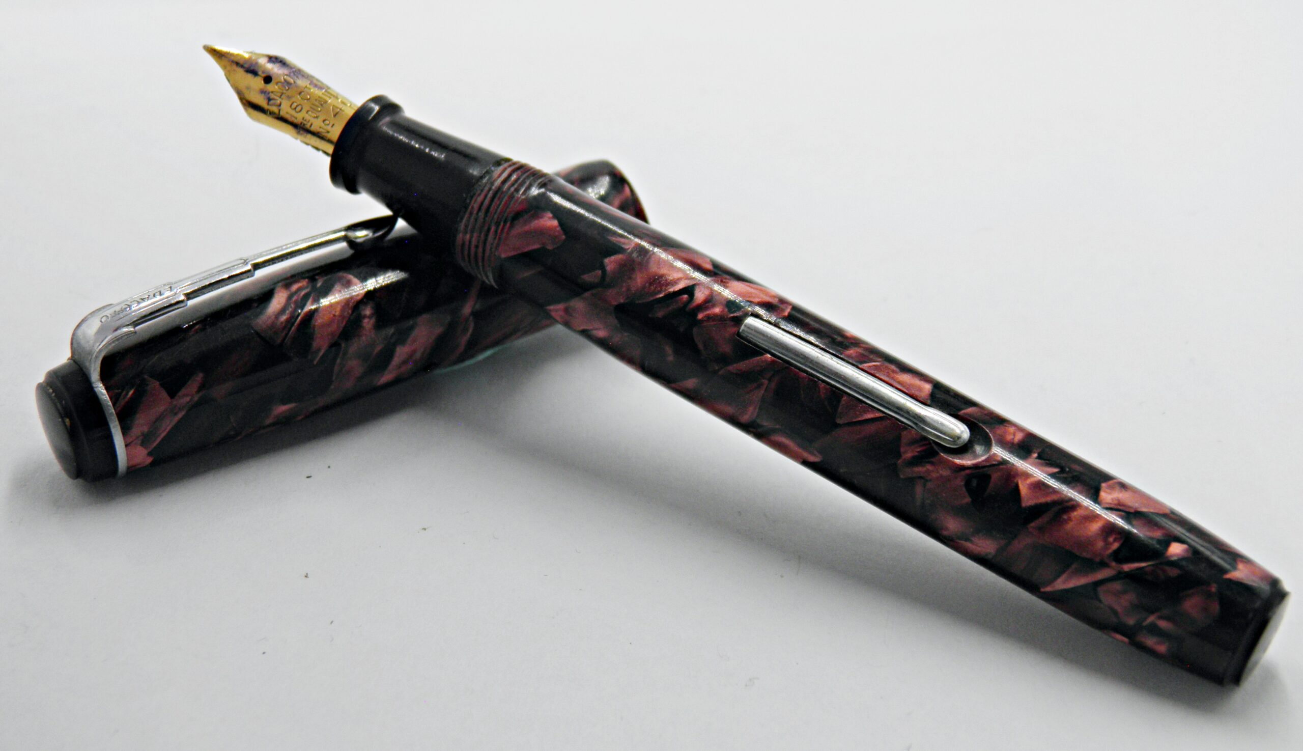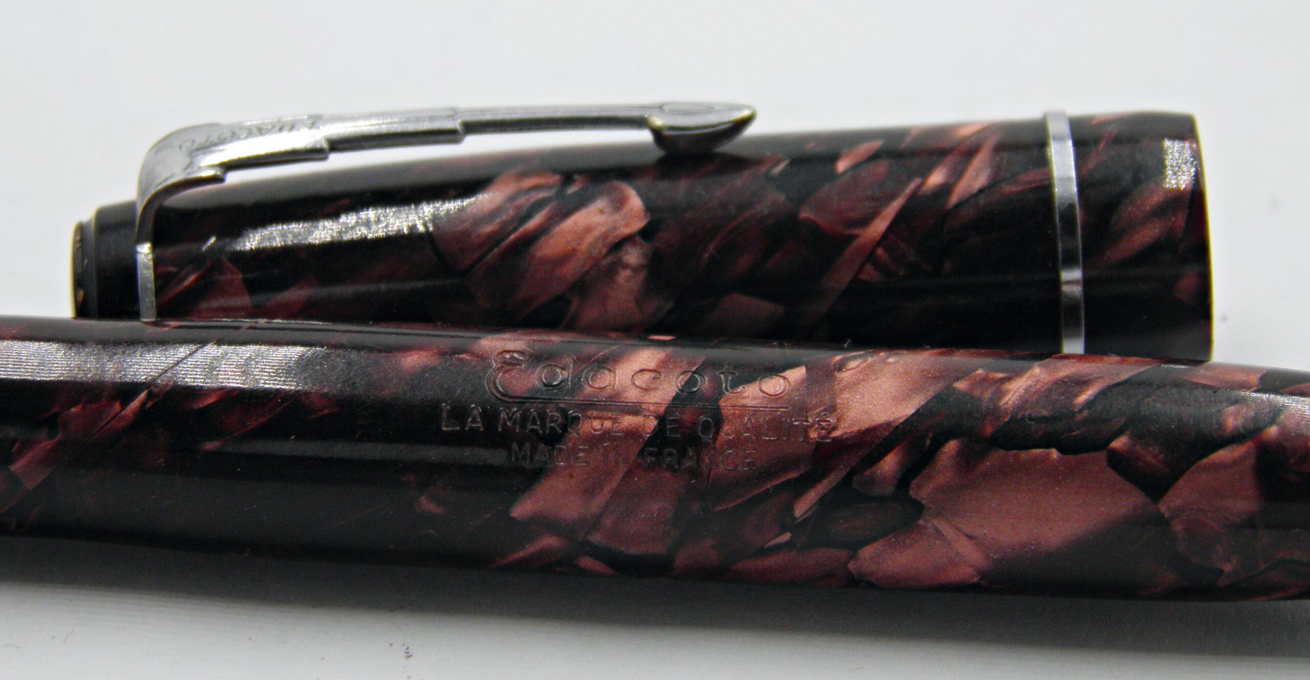 stylo plume EDACOTO celluloïd marbré rose et bordeaux 1940’s flex