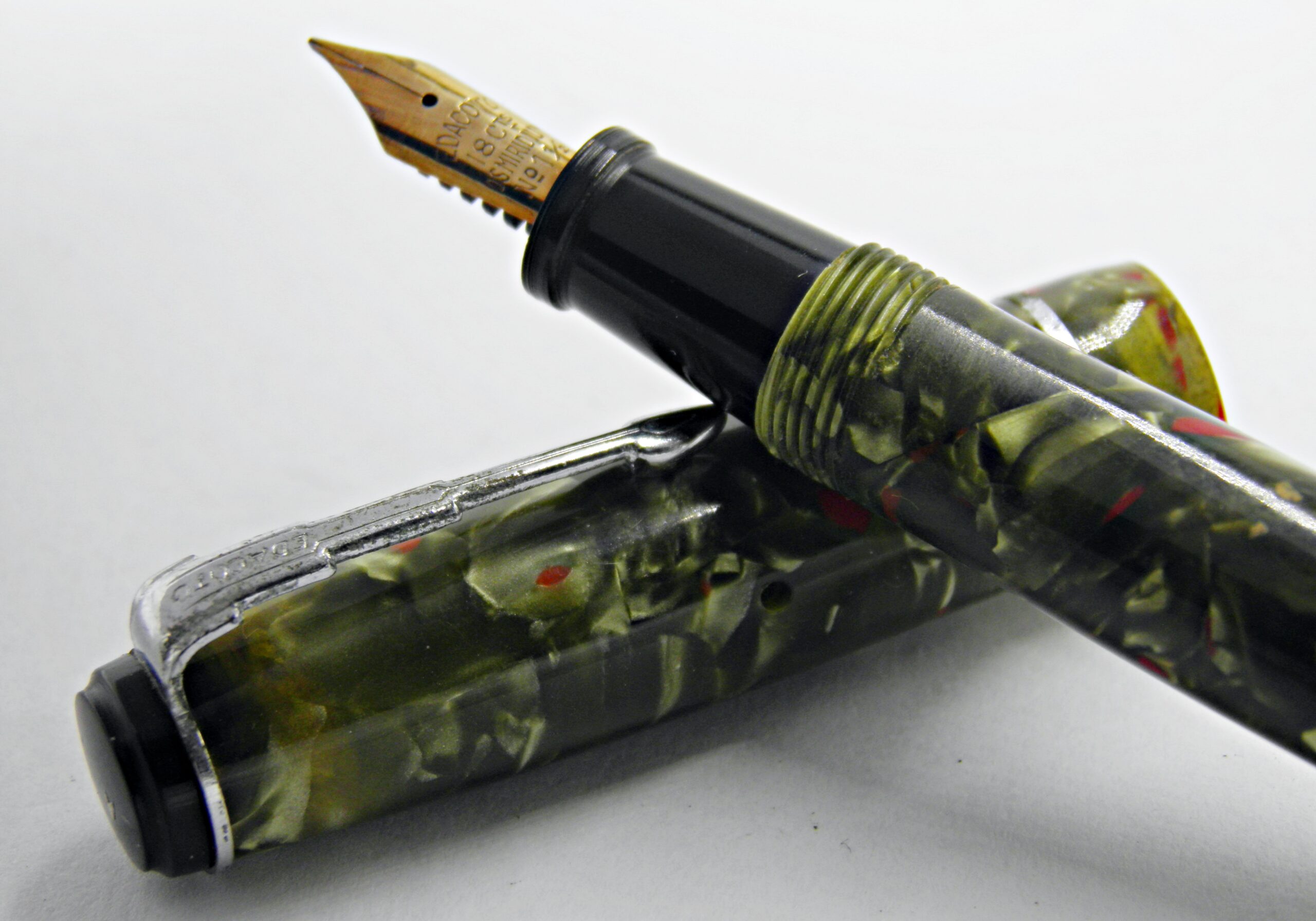 stylo plume EDACOTO celluloïd marbré vert et rouge 1940’s flex