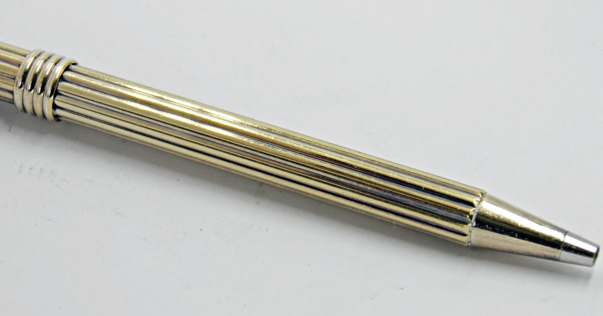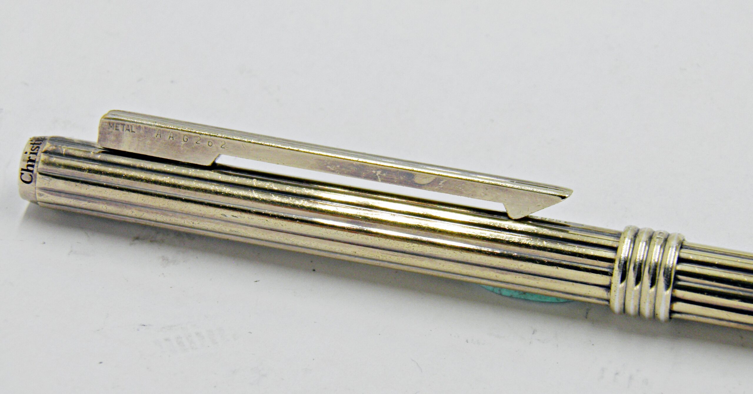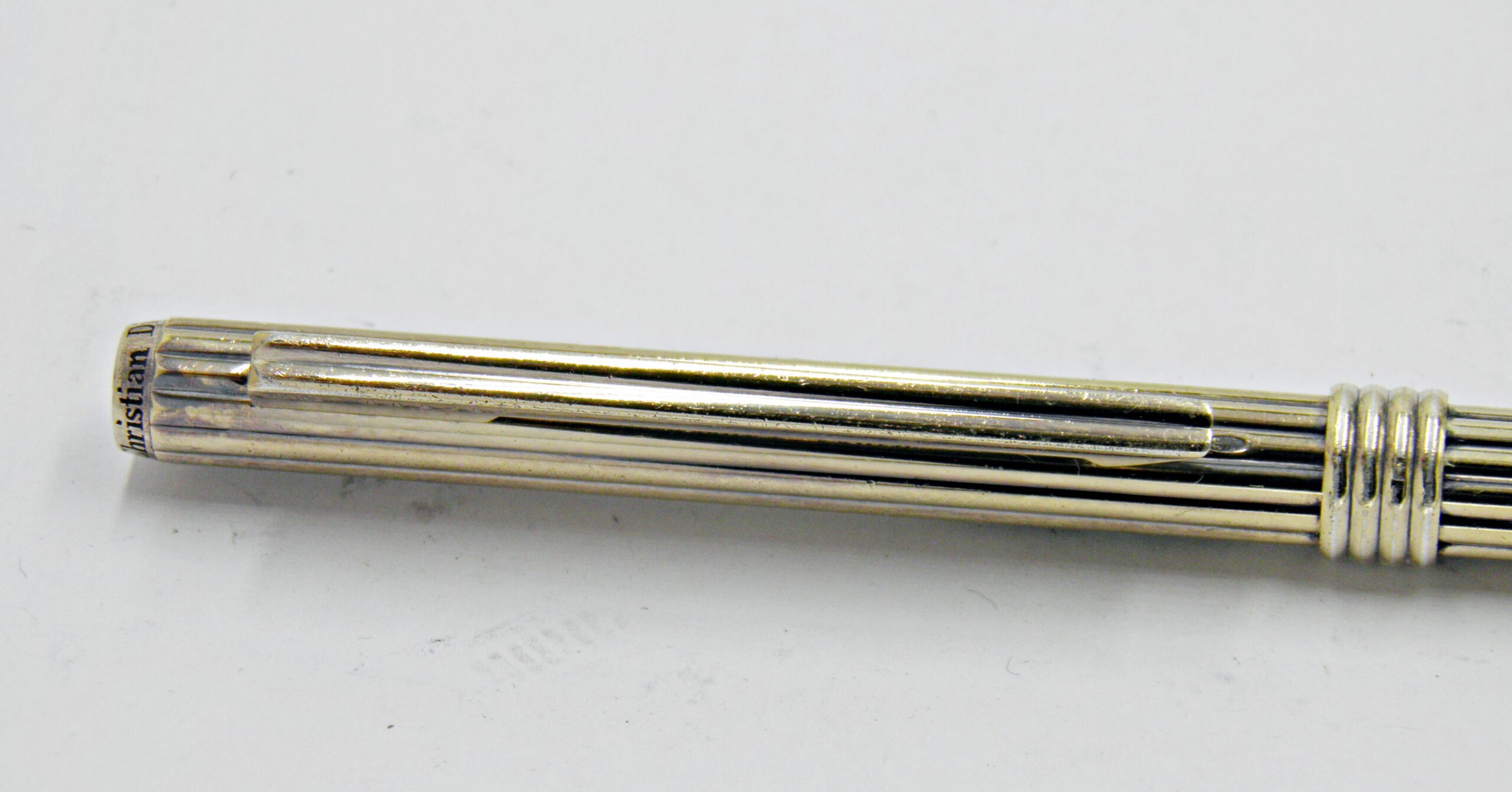Élégant modèle de stylo bille de la marque Christian Dior en vermeil, argent massif plaqué or, au décors godron. Il est en excellent état. Entre l’objet d’écriture et le bijou, un luxueux stylo signé du célèbre créateur de mode.