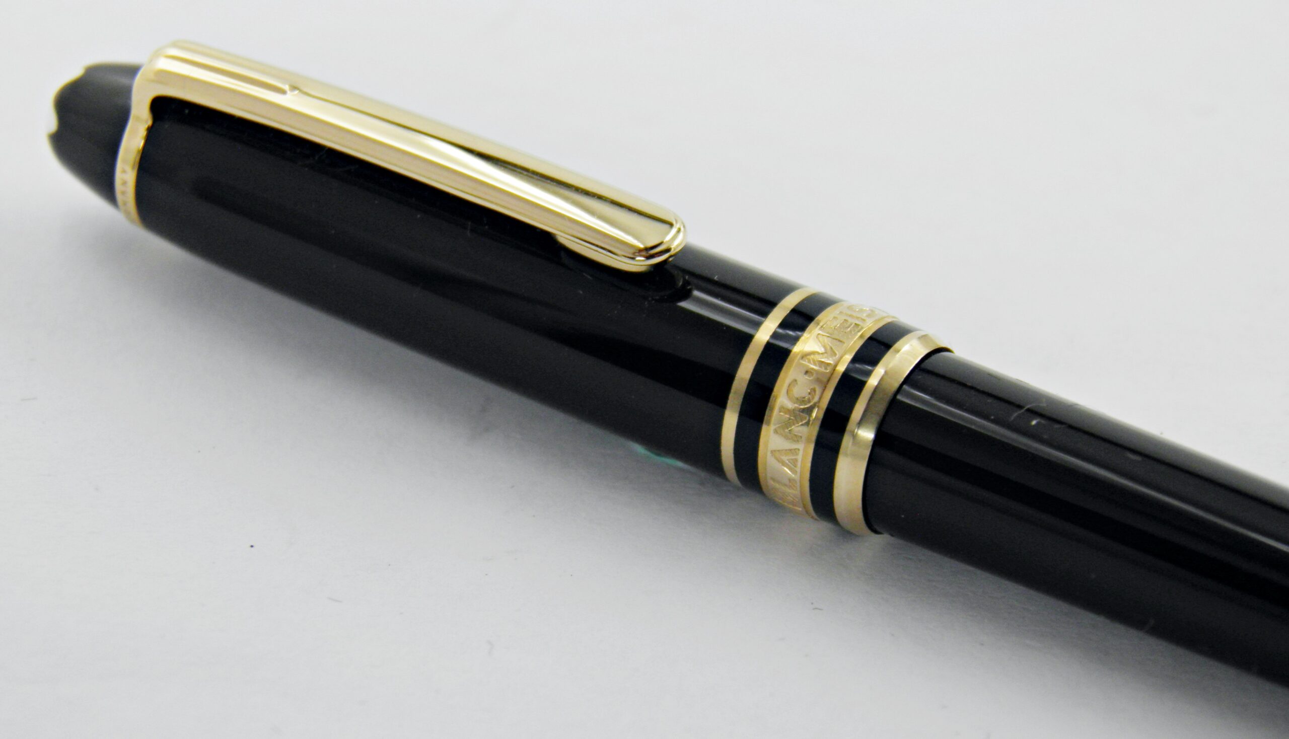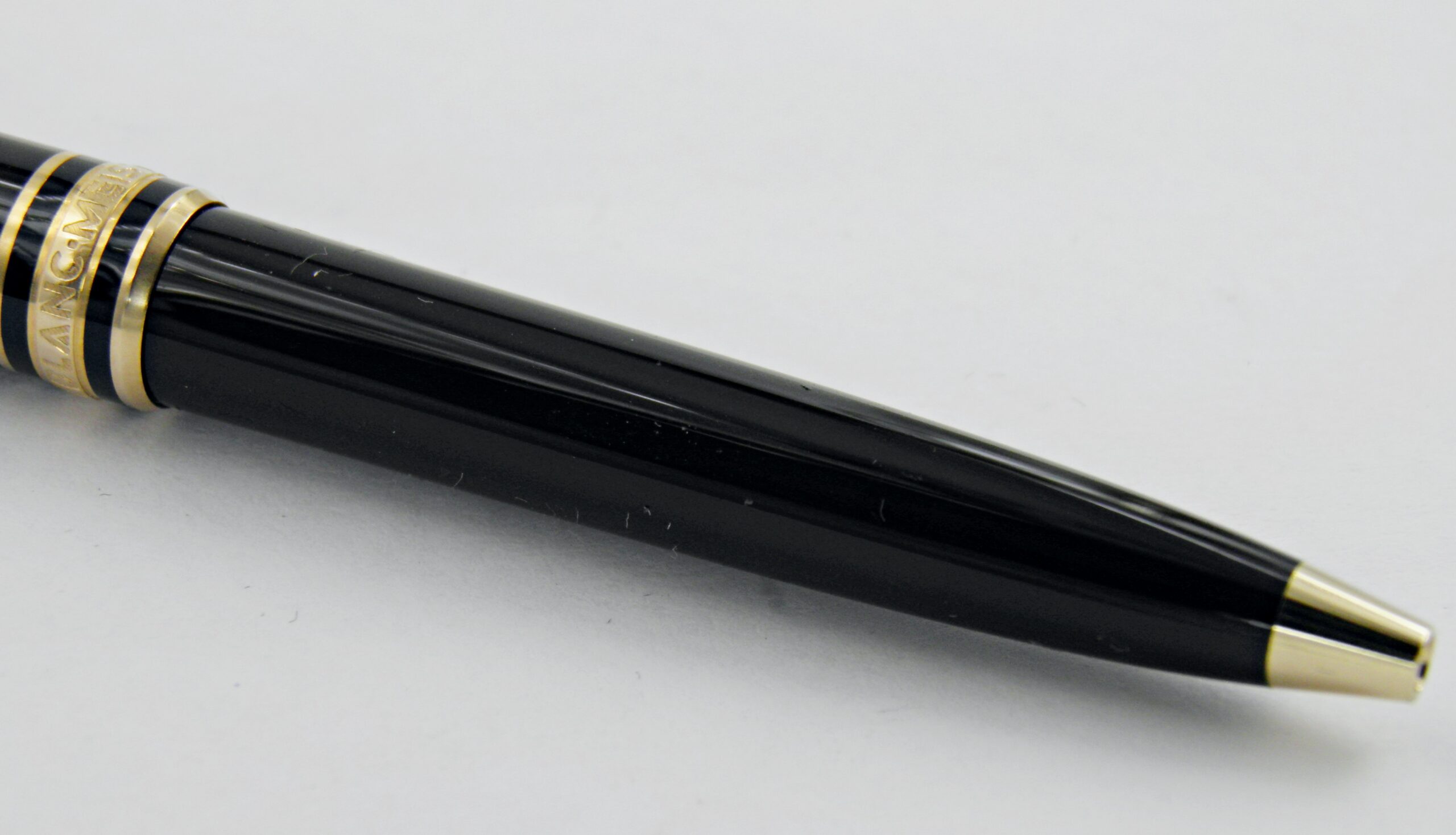 Le plus petit des stylos Montblanc, c’est le modèle Mozart, celui çi est un stylo bille en résine noire et attributs plaqués or. Il fonctionne à l’aide de recharge. Un exemplaire à l’état neuf !