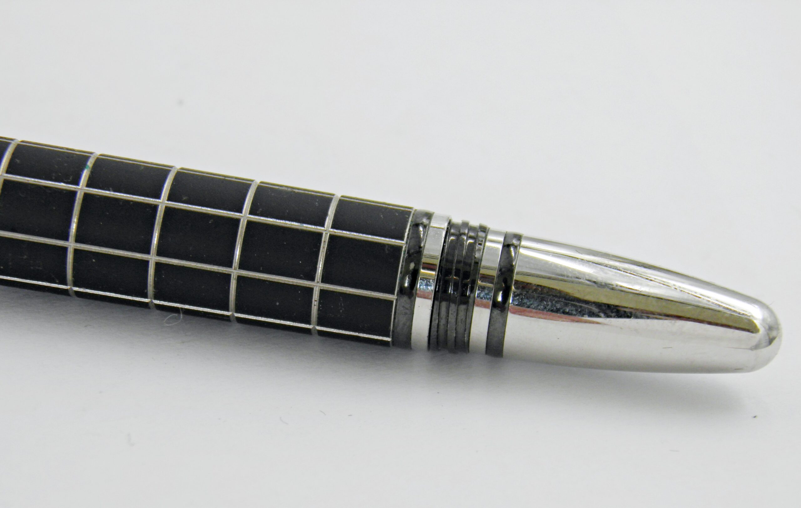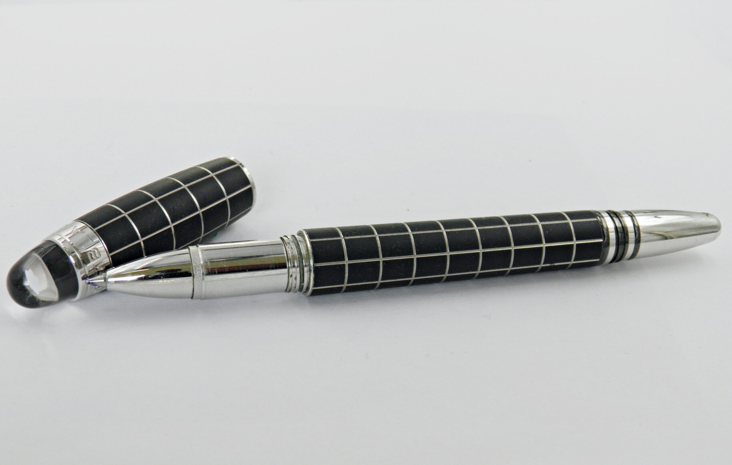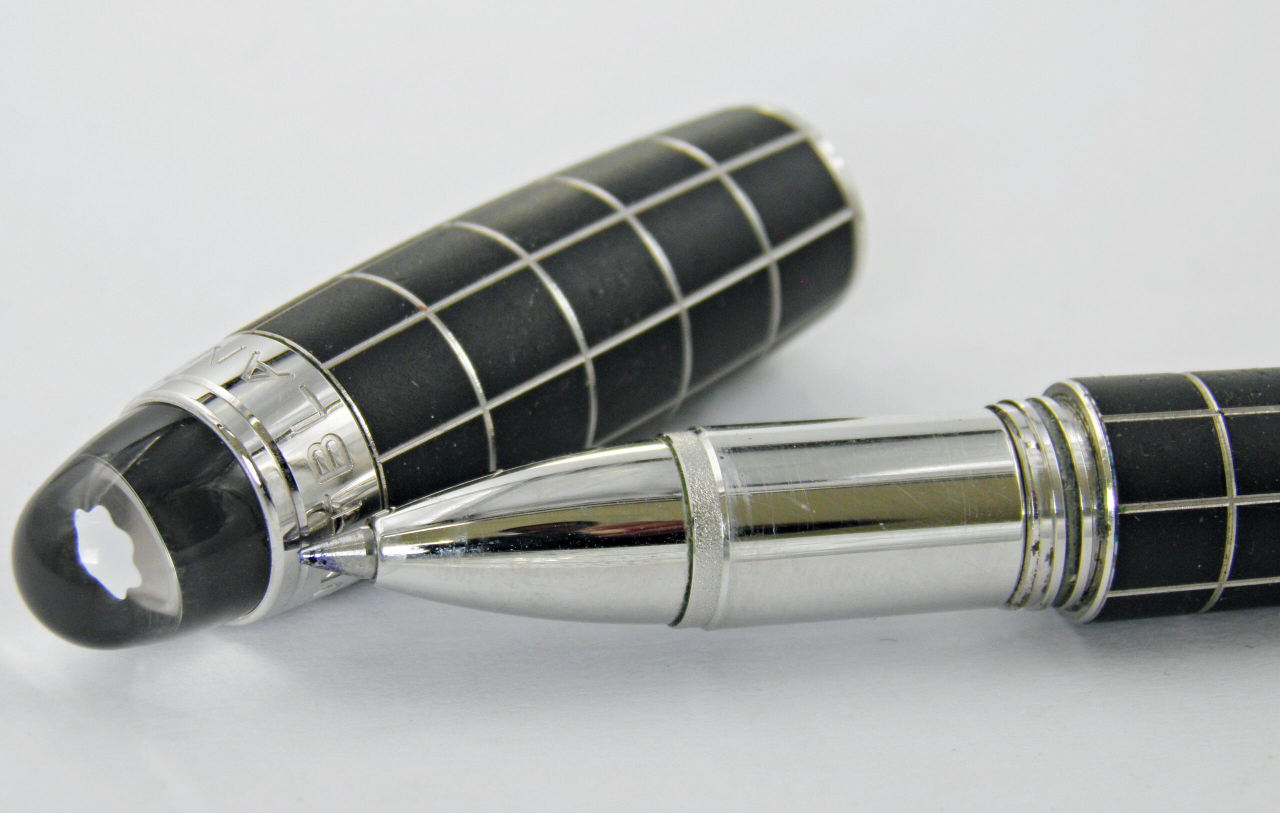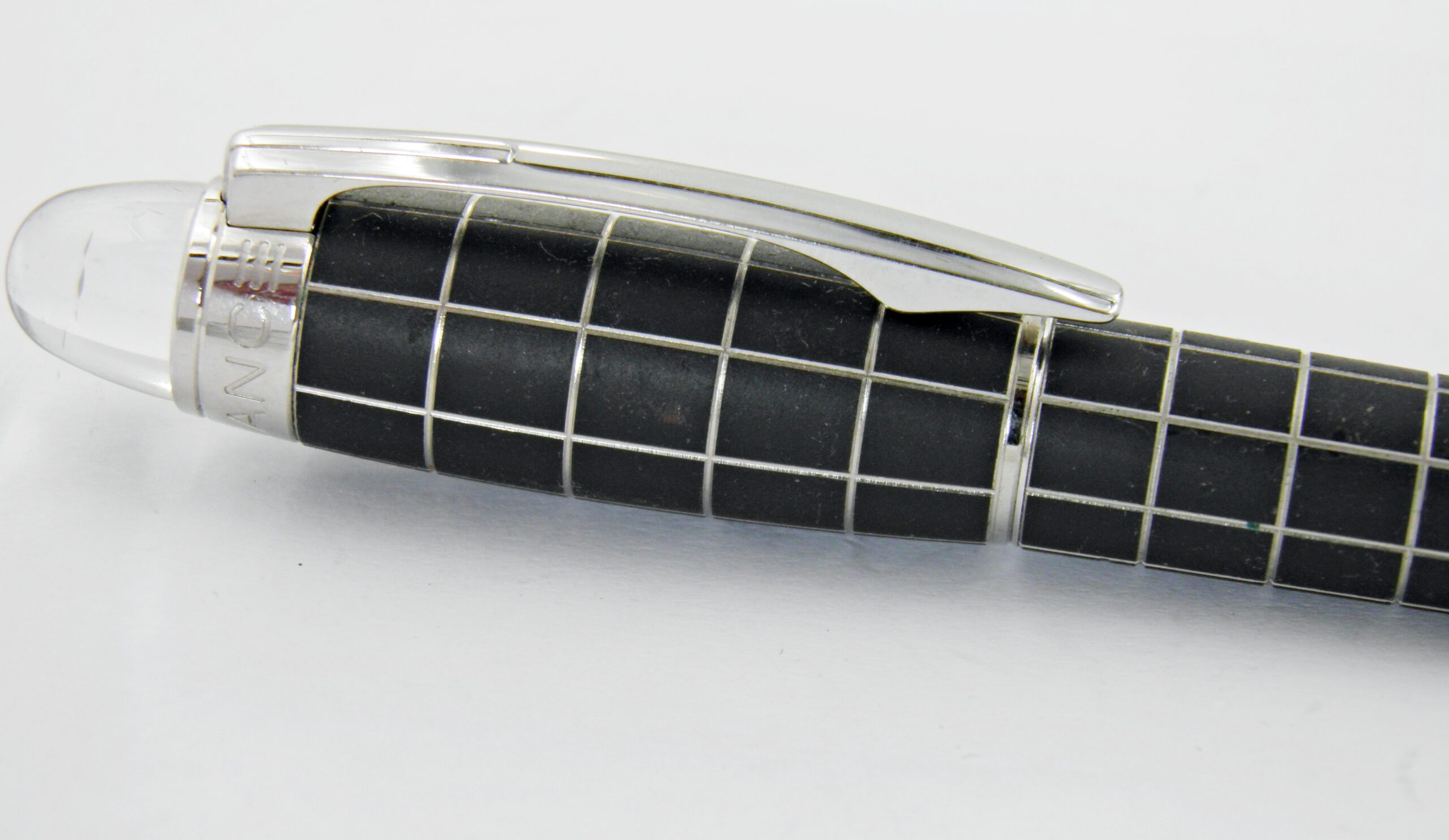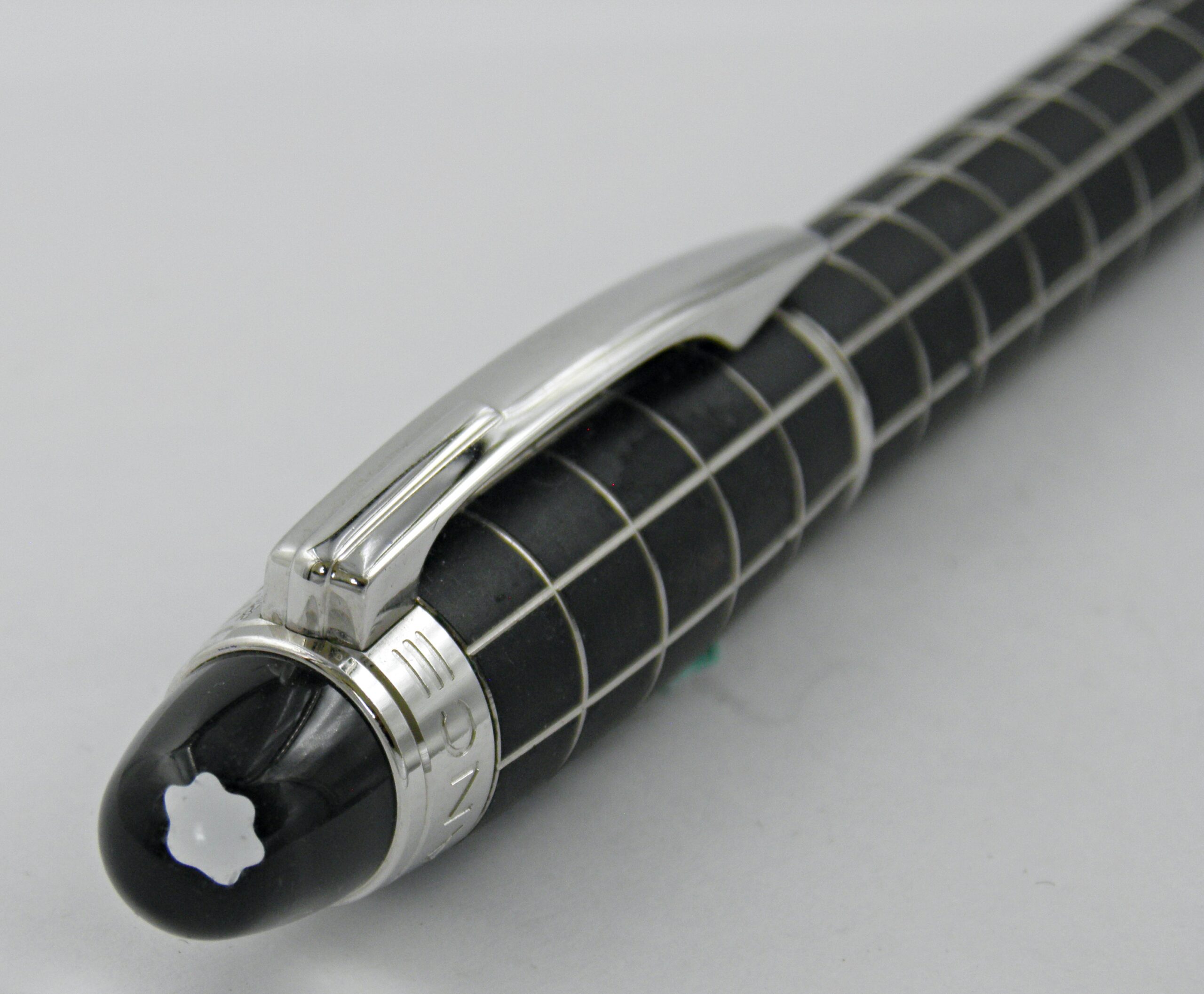 Un stylo bille MONTBLANC, c’est un modèle Starwalker avec son corps métal recouvert d’un habillage caoutchouc et décors de damier.