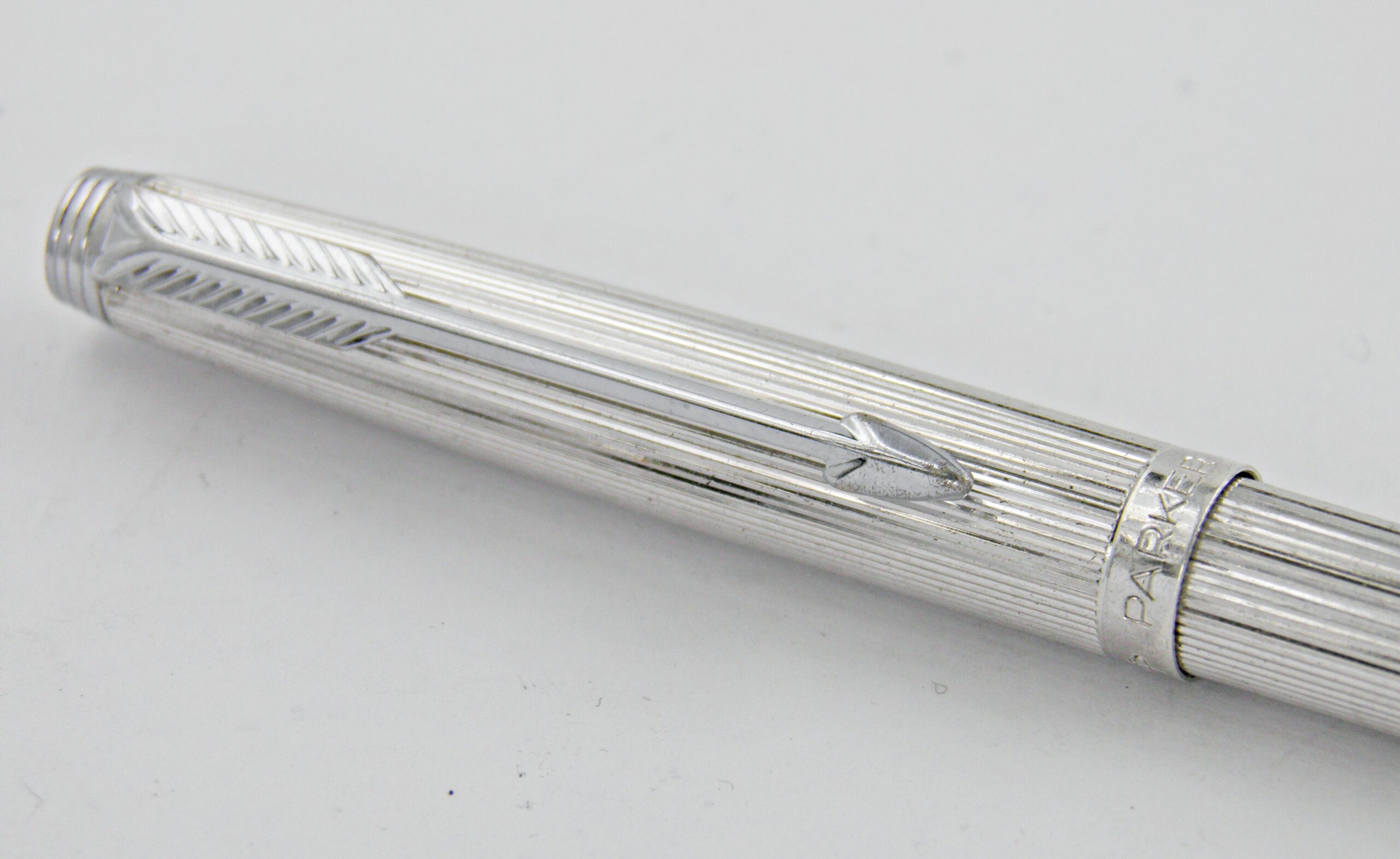 Le PARKER 75 fut un énorme succès commercial, décliné dans de multiples habillages et matières. Les plus luxueux modèles étaient Made in France à l’usine de Méru. Ce modèle est un 75 Milleraies plaqué argent. Il est en bon état général et sera livré avec sa recharge neuve.