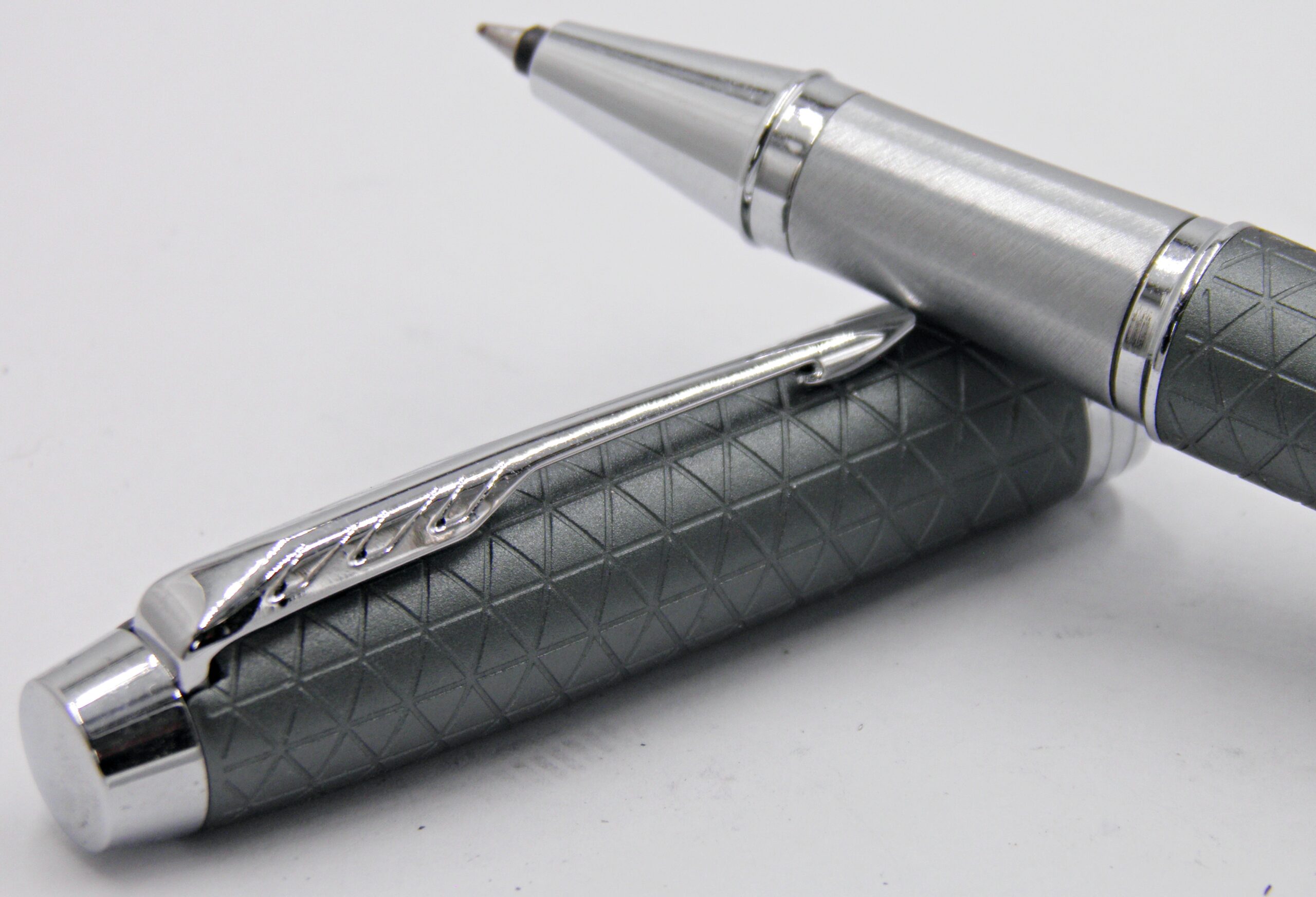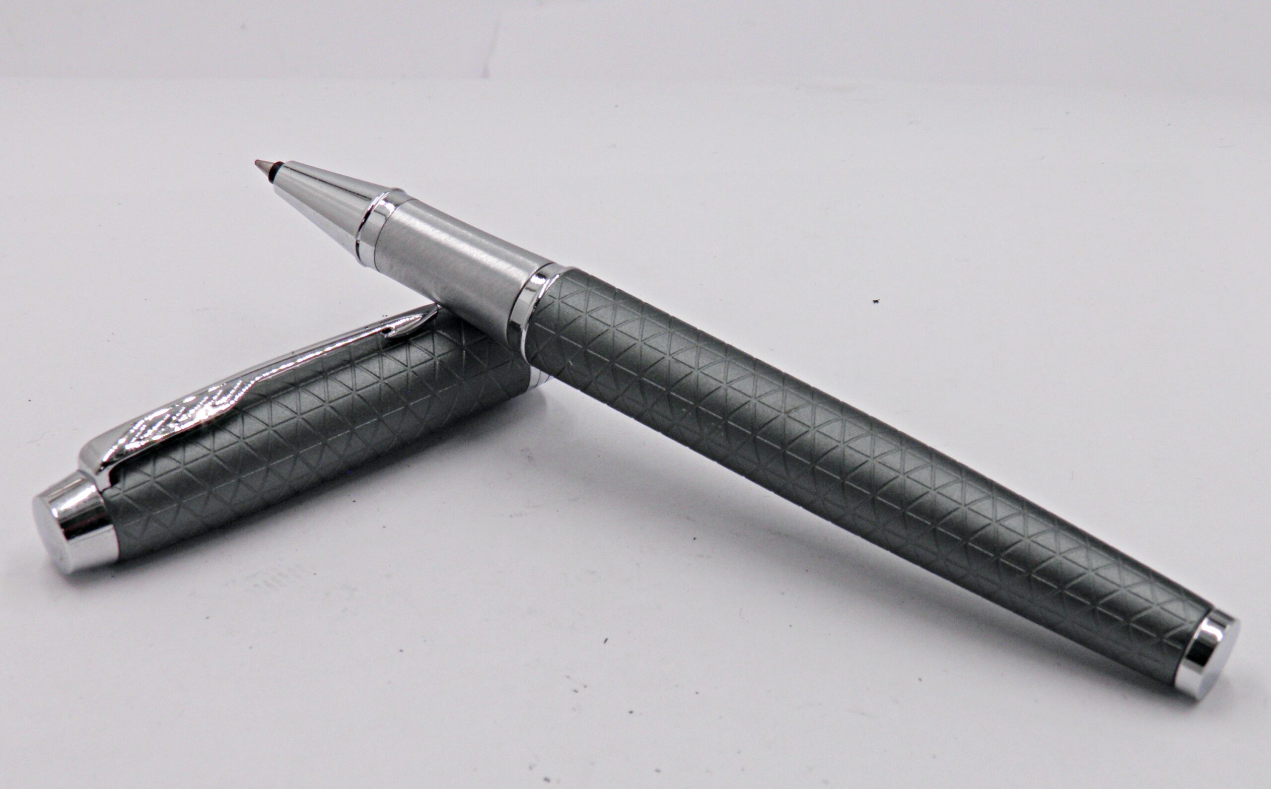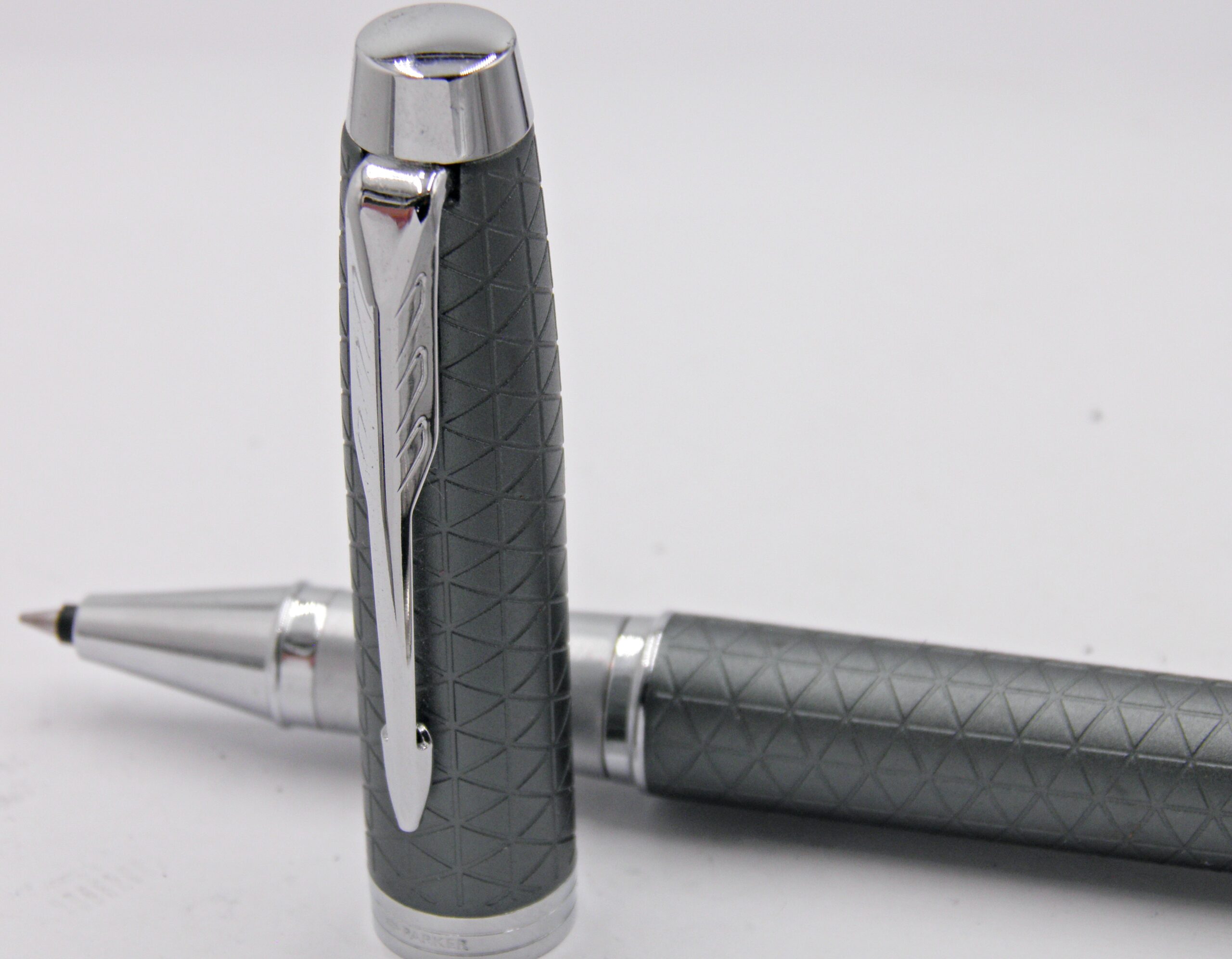Un stylo bille PARKER à capuchon, son habillage à carreaux est d’une couleur vert gris et il date des années 2000’s. Son état est neuf et il sera livré avec sa recharge neuve.