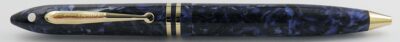 Superbe stylo bille du fabricant SHEAFFER, une ligne intemporelle, l’identité de Sheaffer est clairement reconnaissable. Sa résine bleu marbrée est superbe, ses attributs sont plaqués or et petit blanc rappelant le white dot des années 50’s. Un exemplaire neuf livré avec une recharge neuve.