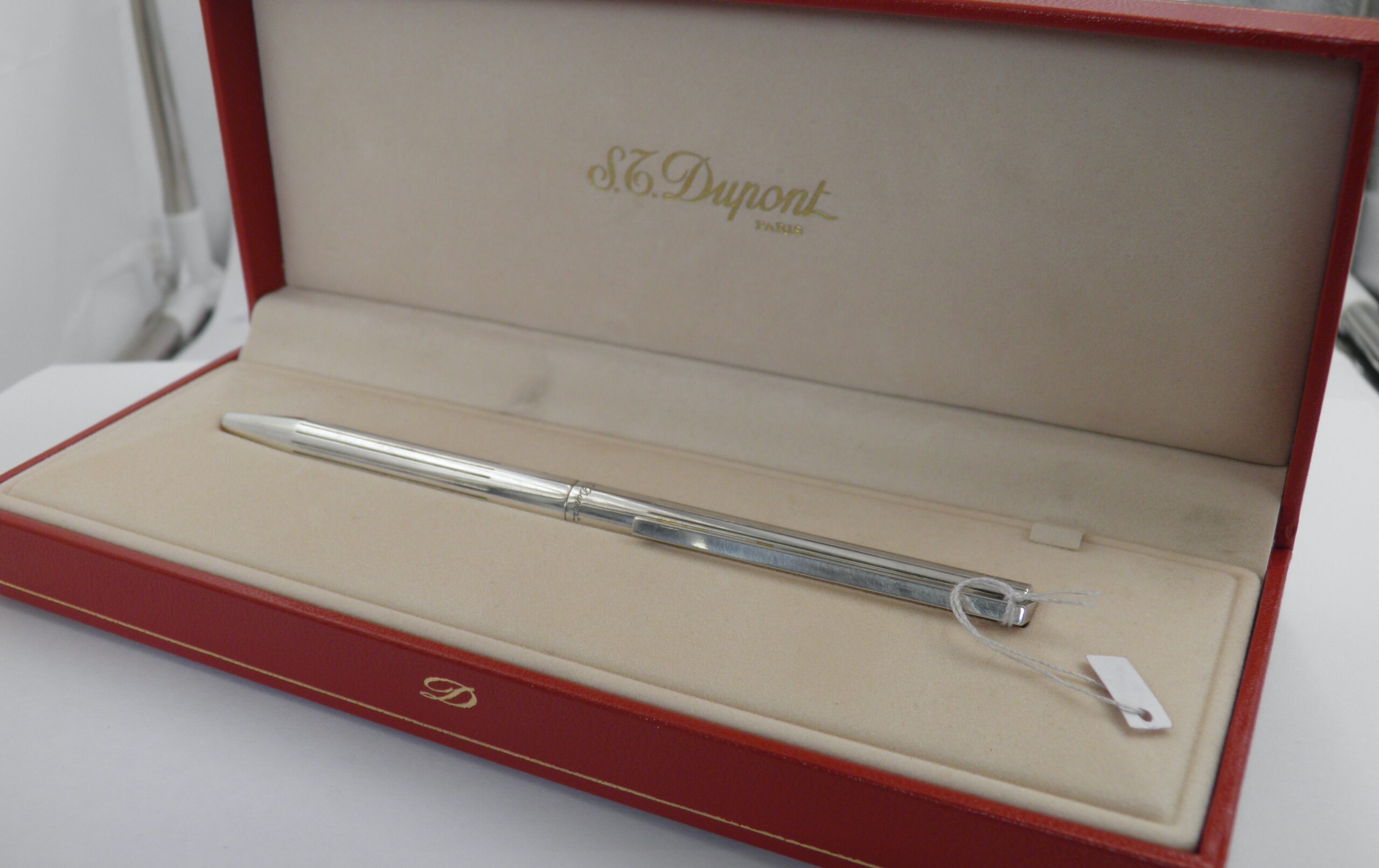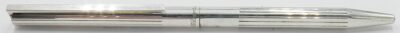 un grand classique de la maison ST DUPONT Paris, ce modèle bille ultra fin est certainement le stylo le plus fin dans sa catégorie. Cet exemplaire est plaqué argent avec des motifs lignes. Une ligne sobre et élégante, un indémodable signé et numéroté. Il sera livré avec une recharge neuve et son écrin rouge ST Dupont.